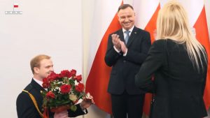 Ale akcja! Strażak oświadczył się w Pałacu Prezydenckim! Mina pary Prezydenckiej bezcenna [WIDEO]