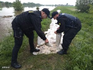 Dąbrowscy policjanci włączyli się w łagodzenie skutków powodzi, która od wczoraj trwa na terenie powiatu.
