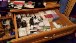 Pojechali na zgłoszenie pobicia kobiety, a znaleźli domową aptekę nielegalnych leków i narkotyki