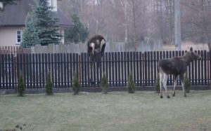 Na profilu gminy Stare Babice zobaczyć można film na którym łoś został uwięziony w przydomowym