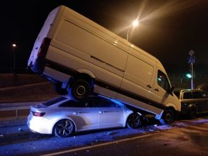 Jak on to zrobił??? Bus zawisł w powietrzu na innym aucie w Warszawie