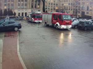 Służby w Ministerstwie Finansów. Policja, straż, karetka i pirotechnicy z psem tropiącym
